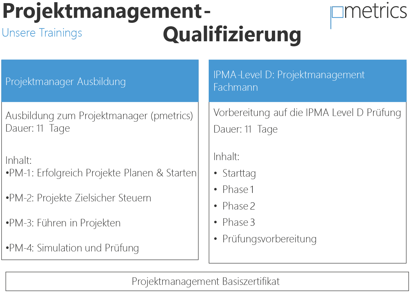 Unser zentrales Ziel für die Trainings ist, dass die Teilnehmer neue Methoden und Verfahren einsetzen, wenn sie in ihrem täglichen Umfeld sind und dadurch den Erfolg ihrer Projekte verbessern. Darüber hinaus vermitteln wir solides Hintergrundwissen, welches flexibel eingesetzt werden kann.